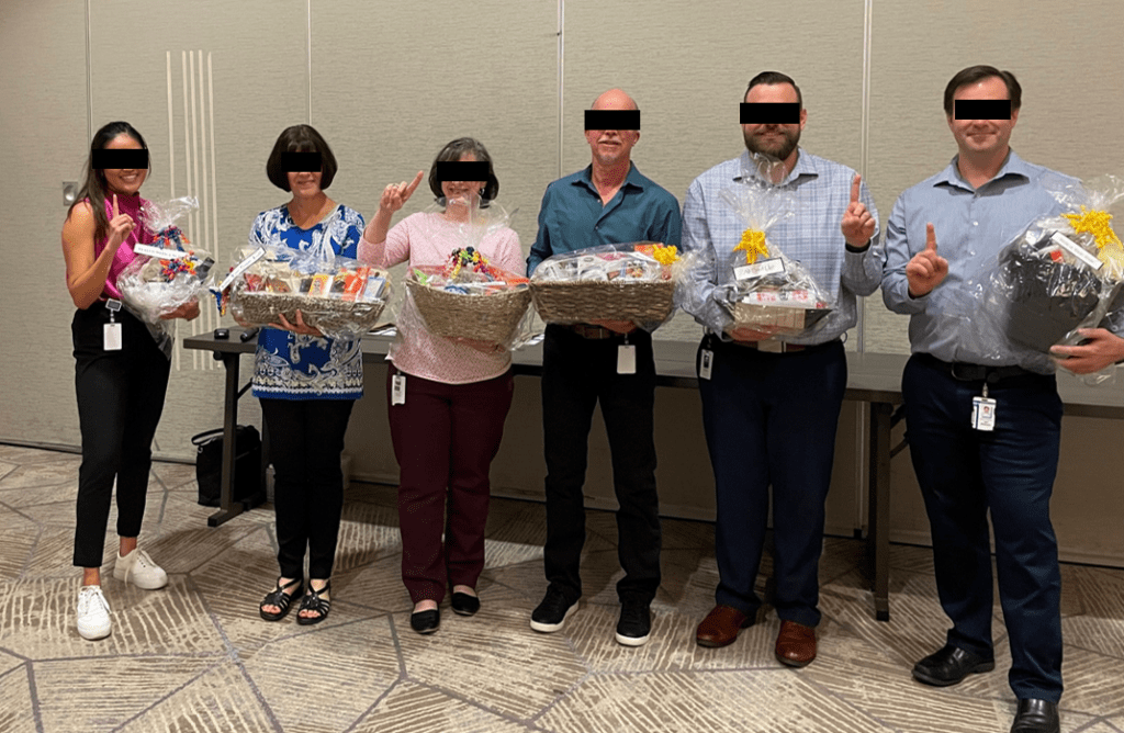 The goal of The Marshmallow Challenge was simple: Build the tallest free-standing structure in 18 minutes using only the four supplied materials, with the marshmallow needing to be on top. The 13 teams of six-people each (with most participating in-person and the balance engaged virtually across multiple locations) had three winning teams. And in addition to earning some bragging rights, each person on the winning teams earned a fantastic prize!